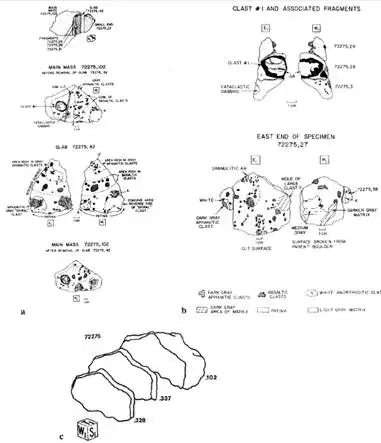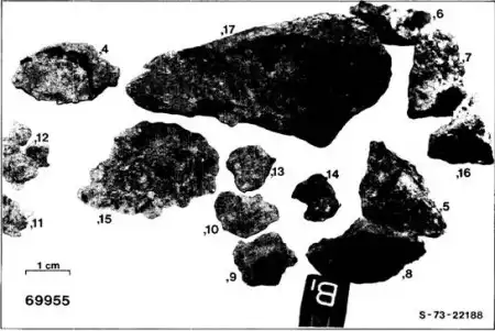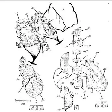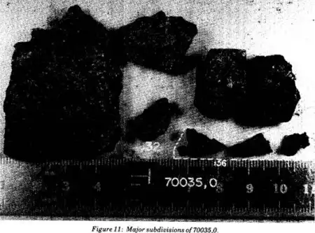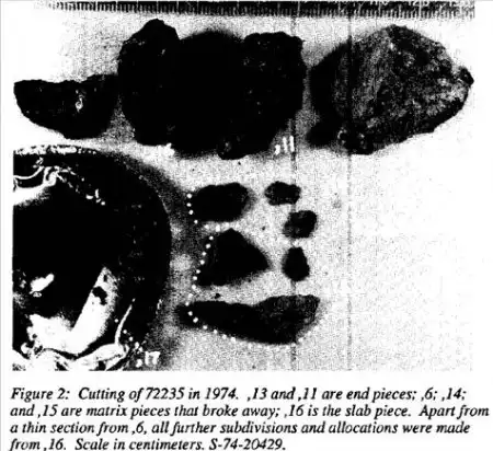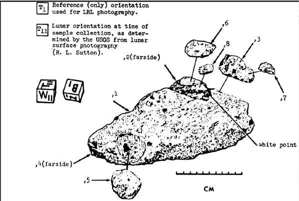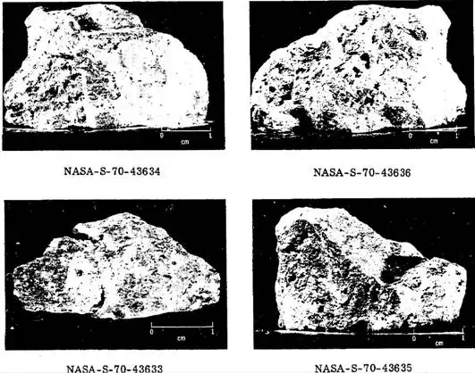 Поскольку крупных камней привезено не так уж и много, всего несколько десятков и мы фактически выбрали наиболее качественные фотографии отражающие общую тенденцию. Фотографии всех камней, разумеется, есть в каталогах НАСА, ссылки на которые мы приводим внизу. И сравнив фотографии в каталогах, легко можно убедиться, что показанные и не показанные камни имеют те же самые общие признаки.