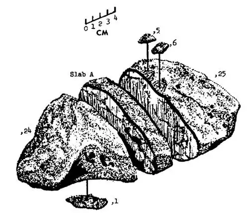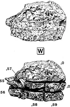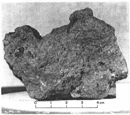 №72235 фотография верхнего камня (брекчии) сделанная через четыре года в 1974 году, камень развалился на части и явно разлагается.