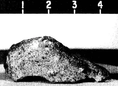 Вес 160 грамм, 13х6х6, плотность вдвое меньше средней для лунных камней, видны сильные следы разложения.