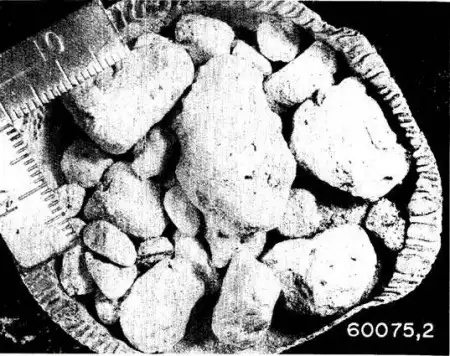 Комки грунта, вовсе не похожие на тяжелый монолитный базальт, вроде земного базальта или гранита. Да и измерения, проведенные на Земле, показали, плотность лунных «камней» в два-три раза меньше земных образцов.
