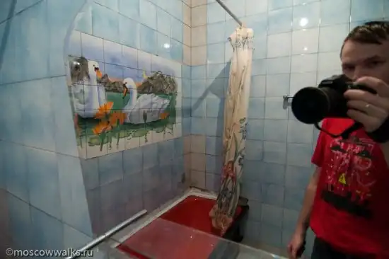 Номер был чистеньким и уютным, даже бедненьким, но и не совковым. Зато в ванной роскошество: лебеди, красная ванна.