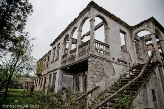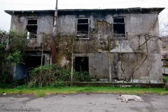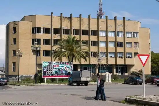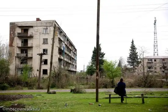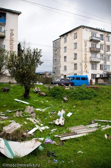 Работать, конечно, никто не хочет. Хочет, чтоб сейчас сюда приехали туристы и деньги привезли, ну или хотя б какой-нибудь полуразрушенный дом продать с участком, благо после ухода грузин множество развалин, будучи развалинами все равно кому-то да принадлежат. Контрибуция, розданная населению типа. Правда, у этого населения нет ни возможности, ни желания что-то с домами делать. Так и стоят.