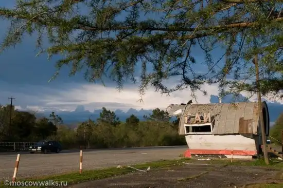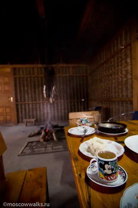 С утра сидим в хорошем придорожном кафе. Сидим на улице, едим мамалыгу (буэ!), хачапури и шашлык (ням-ням), вдруг раздается громкий звук выстрела и для пущего эффекта рядом с нами осыпаются ветки. Напрягаемся, знаете ли, и начинаем озираться. По счету мы оплатили уже, да и почти доели, но на всякий случай уходим с заднего двора. При выходе нас встречает довольный абхаз, прощается и в ответ на наше "а что это было" прямо и бесхитросно отвечает: "Да у нас же тут кафэ, а по крышэ ща опят кошка какая-то пришла, нэльзя жэ ей по столам ходыть и на кухню лазить, ПРЭСТРЭЛИЛ".