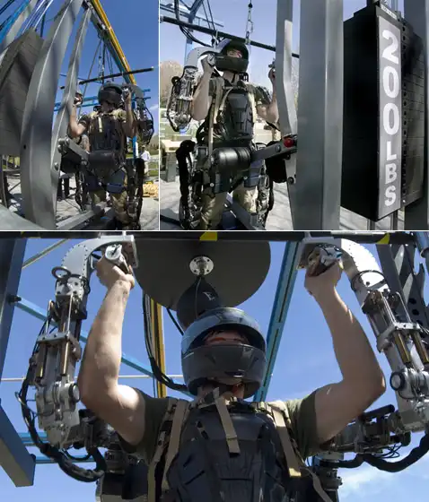 Без каких-либо мучений Рекс Джеймсон (Rex Jameson) — гражданин спортивный, но не качок — в этом "скелете" поднимает груз весом в 200 фунтов — почти 91 килограмм! Хватать тяжёлые грузы можно только посредством специально приделываемых крюков — пока что отдельных "усилителей" для ладоней и пальцев не сконструировано. Но никто и не сообщает, запланированы ли они вообще.