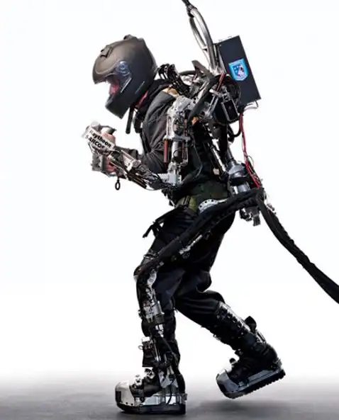С кабелем он далеко не убежит, если что… Пока толком не известно, станет ли экзоскелет беспроводным — подразумевается, что в некоторых ситуациях его вполне можно будет запитать от генератора, установленного, например, на танке али на вертолёте. Естественно, не в "горячих" ситуациях.