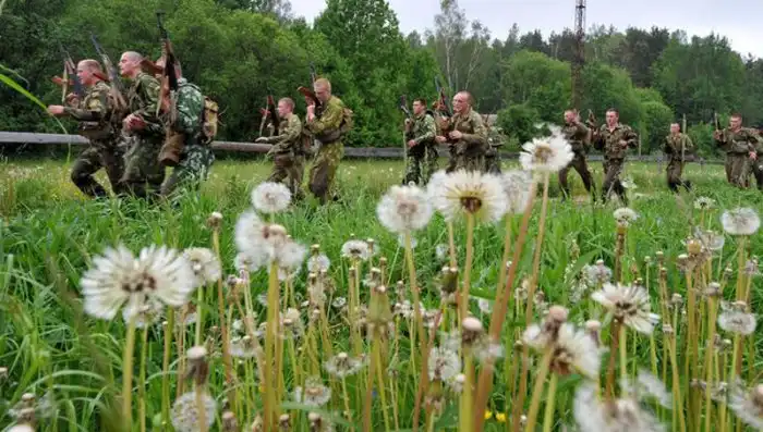 Квалификационные испытания на получение крапового берета включают в себя три этапа, задания которых варьируются год от года. Обычно это - марш-бросок с полной выкладкой на длинную дистанцию, стрельба из штатного оружия и спарринг. (VIKTOR DRACHEV/AFP/Getty Images)