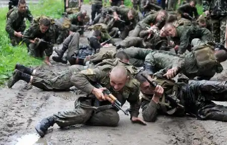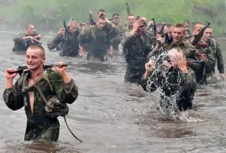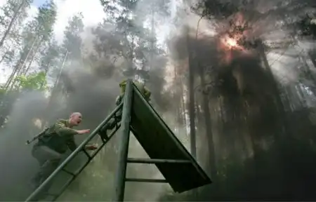 Во время испытаний на получение крапового берета боец должен пройти ряд физических и психологических испытаний, которые подразумевают нагрузки на грани возможности человеческих сил. (VIKTOR DRACHEV/AFP/Getty Images)