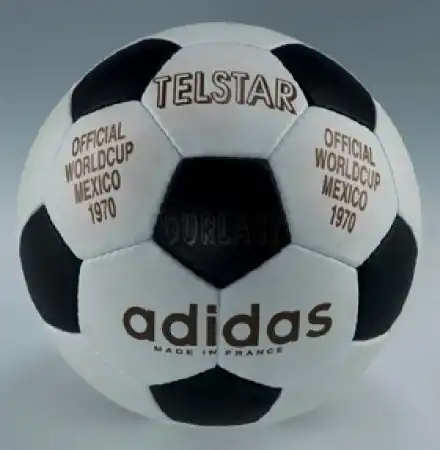 Революция грянула на ЧМ-1970 году в Мексике. Новый официальный поставщик ФИФА, Adidas, представил мяч совершенно новой конструкции. Длинные полосы остались волейболистам, а классической обшивкой мяча на десятилетия стали 32 лоскута: 20 белых шестиугольников и 12 черных пятиугольников. Мексиканский чемпионат впервые транслировался в цвете по спутниковому телевидению, поэтому новый мяч получил название Telstar в честь спутников, которые передавали сигнал и внешне сильно смахивали на футбольный снаряд. Кроме того, считается, что черно-белый рисунок оказался телегеничнее однотонного коричневого.