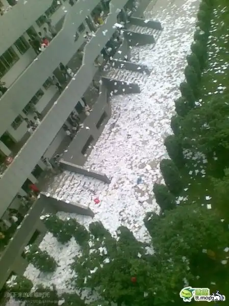 Китайские студенты празднуют конец сессии, выбрасывая из окон аудиторий свои конспекты :biggrin: