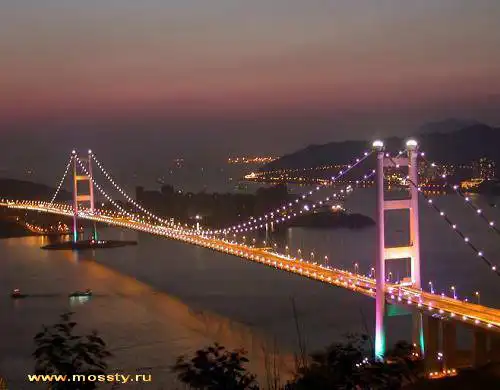 9 Мост Акаши-Кайкио был построен в 1998-ом году в Японии. Раньше на месте этого моста, находился другой мост, со временем эксплуатация старого моста стала невозможной, вот и решили построить новый подвесной мост Акаши-Кайкио. Этот мост является про-родителем остальных подвесных мостов.