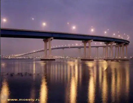 10 Мост Сан-Диего - Коронадо Этот мост был построен в 1969-ом году. Стоимость постройки моста составила 47 миллионов долларов, что по нынешним временам, очень небольшие деньги в мостостроении. Общая протяженность моста Сан-Диего составляет около 3,5 километров. Кроме того мост может поворачиваться на 90 градусов.