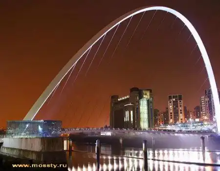 3 Мост в городе Гэйтсхэде Уникальный мост в британском городе Гэйтсхэде. Этот мост в 2002-ом году получил очень престижную Стерлингинскую премию. Гэйтсхедский мост еще называют мостом тысячелетия. Премия мосту была присвоена за его уникальность и неповторимость, а именно за ту гидравлическую часть, которая позволяет мосту наклоняться и пропускать под собой небольшой водный транспорт.