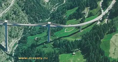 С инженерной точки зрения мост представляет собой великолепный гибрид, рожденный в использованием двух совершенно противоположных методов строительства. Поднимающиеся со дна долины мощные пилоны на самом деле далеко не такие массивные, какими кажутся; полые внутри, они сделаны из предварительно напряженного бетона. Сравнительно легкие и в то же время обладающие большой прочностью, они способны противостоять сильному боковому ветру. Изящная проезжая часть моста также полая внутри.