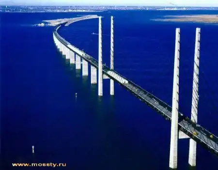 14 Мост Оресунд Строительство этого моста обошлось в 8 миллиардов долларов. Мост Оресунд соединяет берега двух стран Дании и Швеции. Длинна моста составляет 7,5 километров.