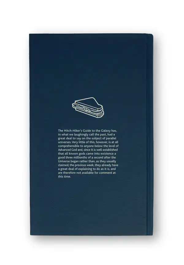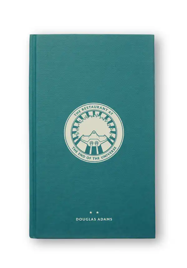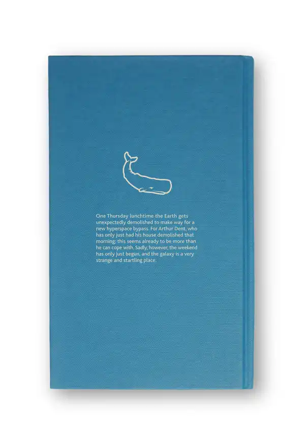 Как известно, эта книга Дугласа Адамса написана в жанре юмористической фантастики, причем написана действительно мастерски. Тем не менее большинство современных обложек для книг, особенно если это жанр "сай-фай", не могут похвастаться такой скромностью, сдержанностью и лаконичностью. Эндрю Ли выдержал не только цветовую гамму для пяти книг, но и наградил каждую запоминающейся эмблемой - спереди и сзади. Причем рисунок на заднике - своеобразная головоломка - может быть понят только после прочтения всей книги.