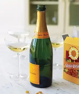 Если бросить изюм в шампанское, то он будет прыгать то вниз, то вверх по стакану без остановки.