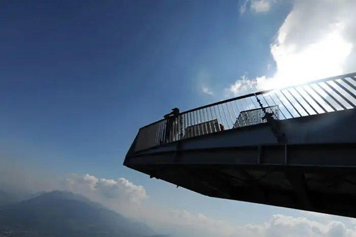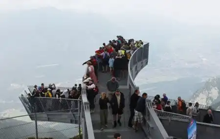 Смотровая площадка AlpspiX — аттракцион не для слабонервных: два небольших помоста, нависших над альпийской «Адской долиной», от бездны отделяет всего лишь решетка.