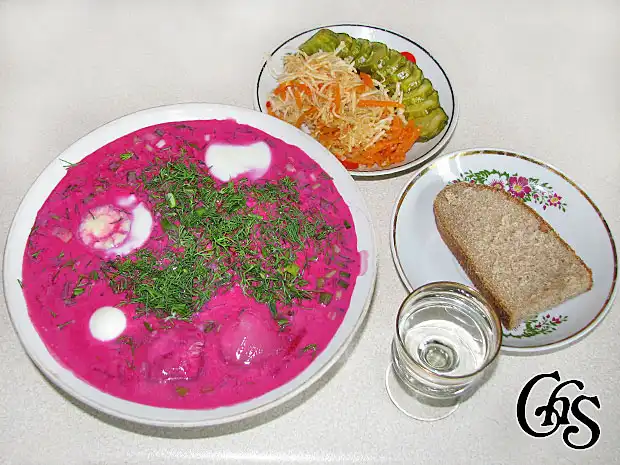 И самый главный штрих – комплектация! Очень хорошо идет с салатиком из селеры и морковки по-корейски, с черным хлебом (у нас этот сорт называется украинский), на которой можно положить небольшой, пальца в три толщиной кусочек жареной подчеревки или очень хорошо (опробовано, гарантирую) фаршированных окорочков