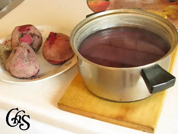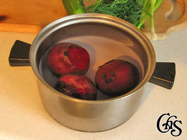 Готовность проверяем ножом, он должен входить в свеклу легко, как пиво в организм. Ориентировочно это случается через час варки.