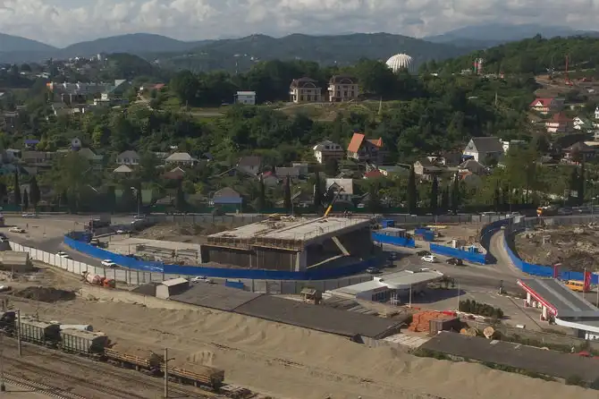 Транспортная проблема в этих местах — одна из самых серьезных, поэтому от Олимпийского парка через аэропорт строят железную дорогу и автомобильное шоссе в район Красной поляны, где будут проводиться соревнования лыжников и саночников. Строительство грандиозное и очень дорогостоящее.