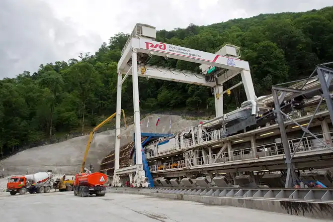 На фотографии — еще одно чудо немецкого технического гения: тоннелепроходческий щит Herrenknecht-13210. Щит был заказан в Германии специально для строительства олимпийской трассы и предназначен для строительства самого большого по диаметру (13 метров) и по протяженности (3169 метров) автодорожного тоннеля олимпийской трассы.