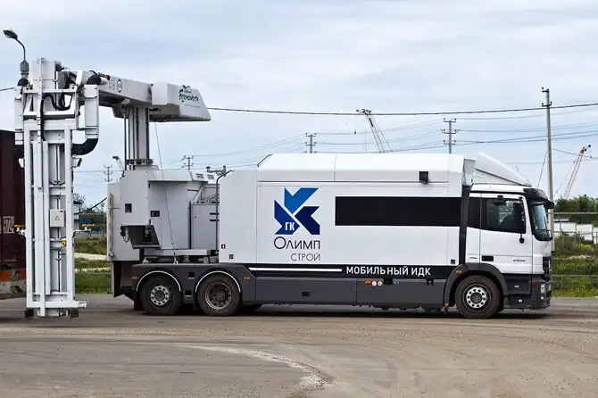Большегрузные фуры даже просвечивают на вот такой мобильной установке.