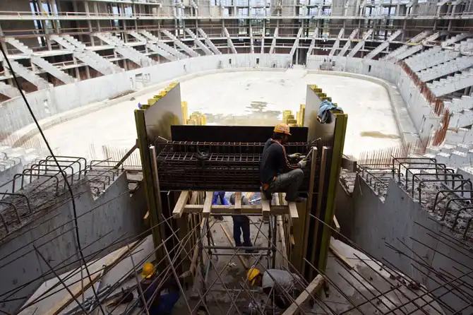 Большая ледовая арена будет вмещать 12 000 зрителей. Здесь её называют «колизеем».