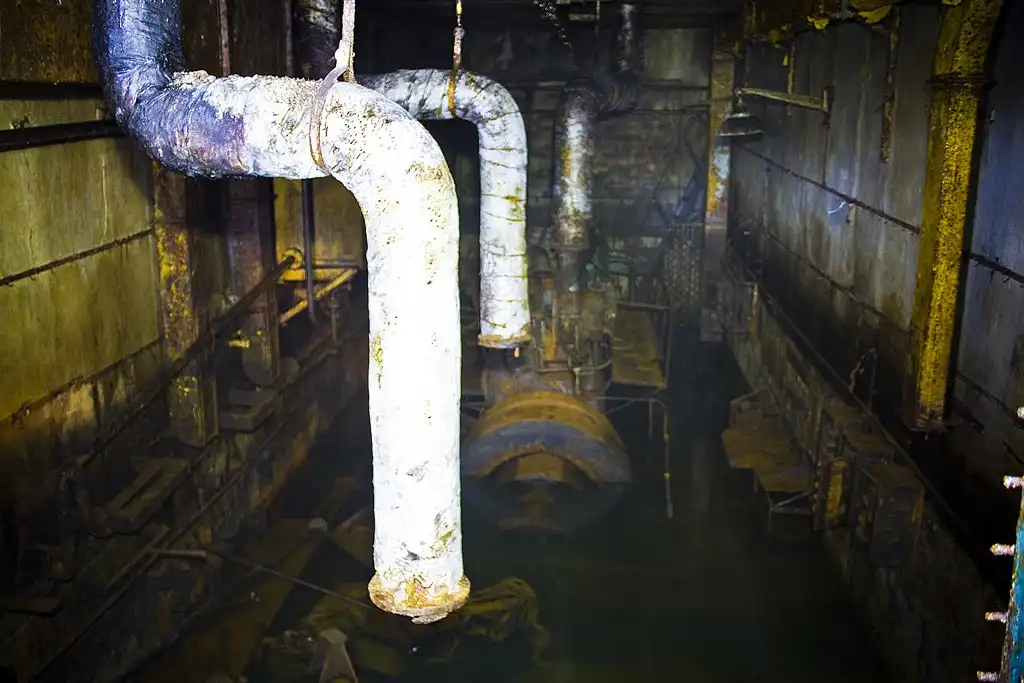 Генераторная. Затоплена сильнее чем на Чусовой. Двина находилась на болоте и пока работала, то из нее постоянно откачивали воду..сейчас--увы..