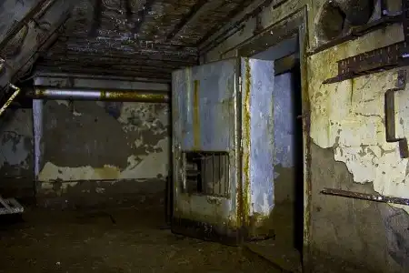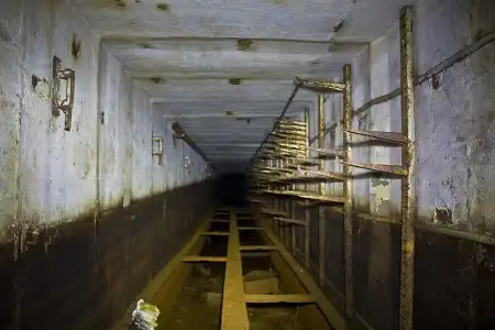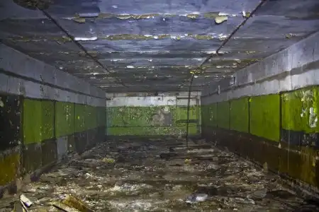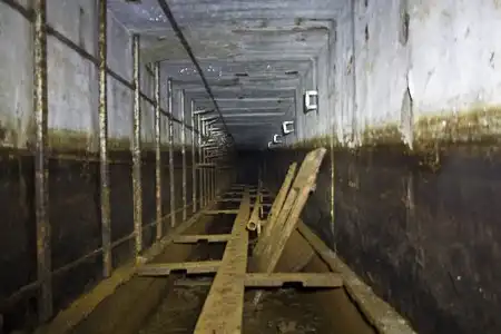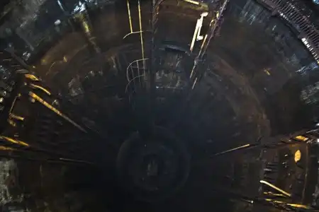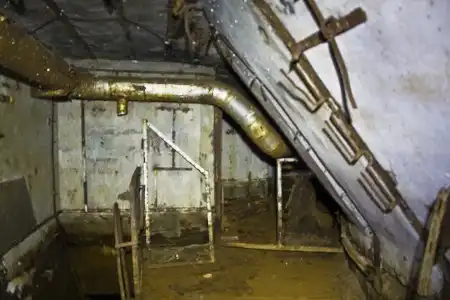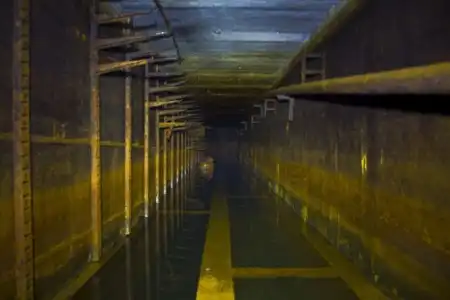 К нашей радости или огорчению..на время того как режут шахты на метал--из них откачали воду, на фото виден уровень--до куда она была.
