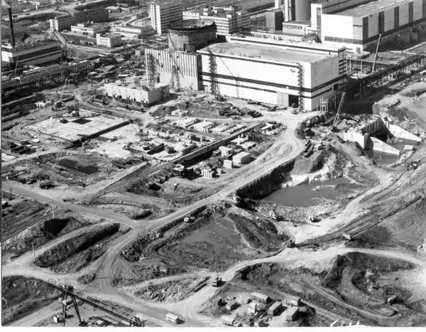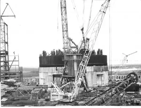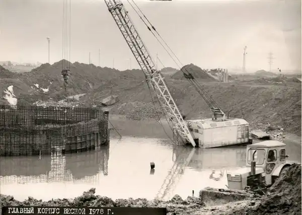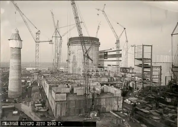 50) Вагончики строительно-монтажного управления (СМУ) и недостроенный корпус дизель-генератора для 4-го блока