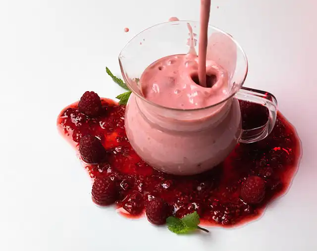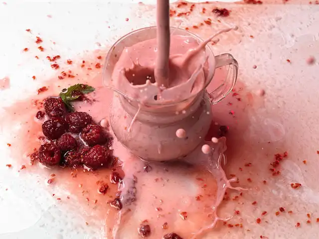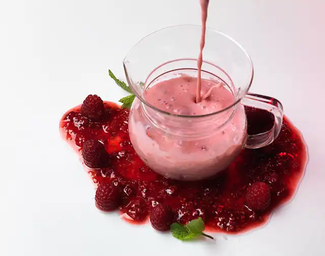 Разотрите малину с сахаром, смешайте с айраном из сюзьмы или даже простым йогуртом. Не забудьте взбить. Ведь даже самый лучший катык или мацони, если его немного взбить, превращается из еды в замечательный напиток. Но скажите, что это – напиток или уже вполне себе ланч?