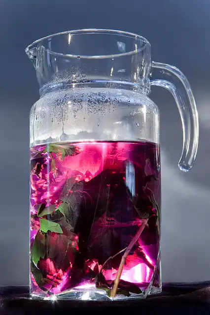 Свежий фиолетовый базилик отлично заваривается и даёт настой густого, фиолетового цвета. Добавьте в настой сахар, что бы вы не думали о сладком в такую жару. Процедите настой и добавьте в него лимонный сок. Настой моментально изменит свой цвет на ярко-красный и у вас получится отличный щербет.