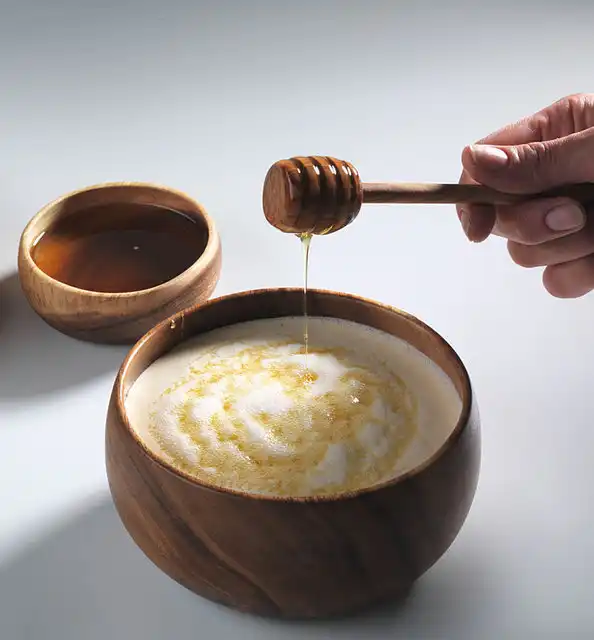 Кстати, о балансе! Айран имеет приятно-кислый вкус. Щепотка соли сюда так и просится! Но что если пойти другим путём? Ведь нам приятны не только кисло-солёные вкусы, но и кисло-сладкие! Так добавьте в свежий, только что взбитый айран немного меда! Вы даже не представляете себе, насколько вкусно это получается!