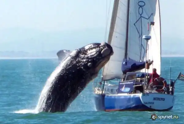 Затем он показался в 10 метрах от нас, выпрыгнул и приземлился на яхту.