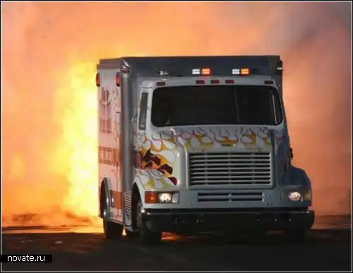 Jet Ambulance, - реактивный автомобиль, который обеспечивает медицинскую помощь в исключительных случаях. Правда, эту помощь врачи смогут оказать только на месте происшествия, поскольку внутри автомобиля нет помещения для пострадавшего. Все место занимает реактивный двигатель...