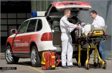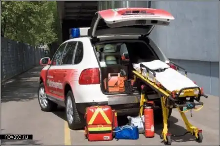 Этот Porshe Cayenne считается самым быстрым в мире автомобилем скорой помощи. Находится он на попечении города Штуттгарт, и используется как раз в тех исключительно сложных случаях, когда счет идет на доли секунды, или же для доставки в больницы города органов для трансплантации.