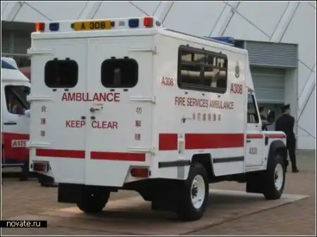 Медицинский LandRover такой же большой, как и предыдущий реанимобиль, но британского происхождения. Так же, как и американский коллега, используется при сложных погодных условиях и для преодоления сложных ландшафтных преград.