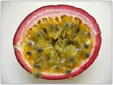 Пассифлора плодовая. Это один из самых ароматных тропических фруктов. Родина - Бразилия. Известен также под названием "гранадилла", что означает "маленький гранат". Богат витамином С.