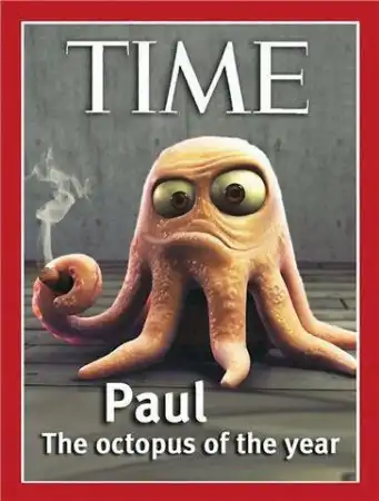 Осьминога Пауля можно смело назвать самым популярным персонажем чемпионата мира по футболу 2010 г. Этот моллюск прославился тем, что очень точно угадывает результаты матчей — примерно 80% его «прогнозов» оправдались, о таких показателях футбольные аналитики и букмекерские конторы могут только мечтать. Пауль, проживающий в океанариуме Sealife в Оберхаузене (Германия), делает предсказания, выбирая одну из двух кормушек с флагами стран команд-соперников.