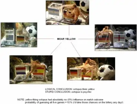 Есть версия, что Пауль дрессированный, всегдавыбирает правый ящик. Ну или ему просто нравится желтый цвет.