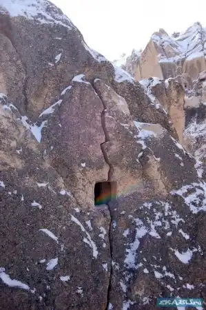 Опять Каппадокия (Турция). Эрозия тонны мягких вулканических пород, оставив более прочные. Эти "волшебные дымоходы", испещрённые пещерами представляют весьма необычное зрелище