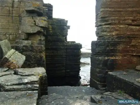 В Кейтнессе, на восточном берегу Шотландии сильные ветра и волны моря "от тесали" скалы так, что они стали похожи на рукотворные стены.