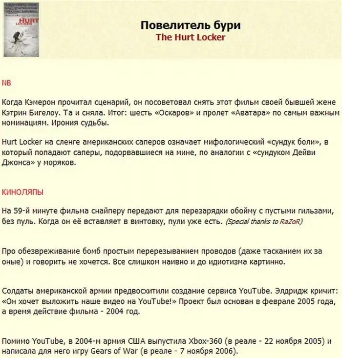 Аватар, Команда А, Железный человек, Повелитель бури, Остров проклятых, Трансформеры 2 и т.п.