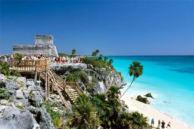 Пляж Тулум, Мексика. Чистые карибские воды и мелкий белый песок могут быть найдены на разных пляжах, но что делает Тулум уникальным, так это остатки строений майя, что позволяет легко прикоснуться к кусочкам древней цивилизации и понять, почему они выбрали именно это место.
