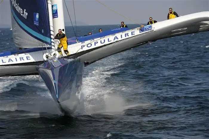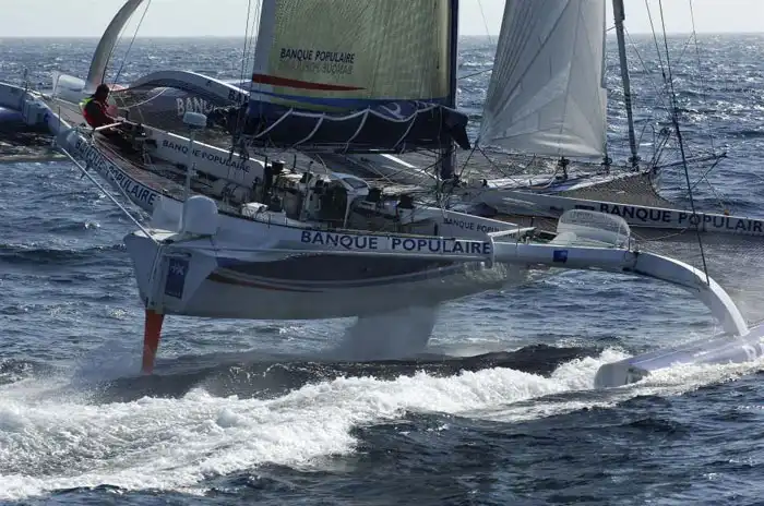 открытом море в тримаранах могут использоваться подводные крылья. При этом они могут быть установлены по двум классическим схемам - самолетной или «уткой».