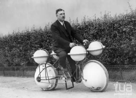 Велосипед-амфибия, можно кататься и по земле и по воде, максимальная "грузоподъемность" на воде 120 кг (Франция, 1932)