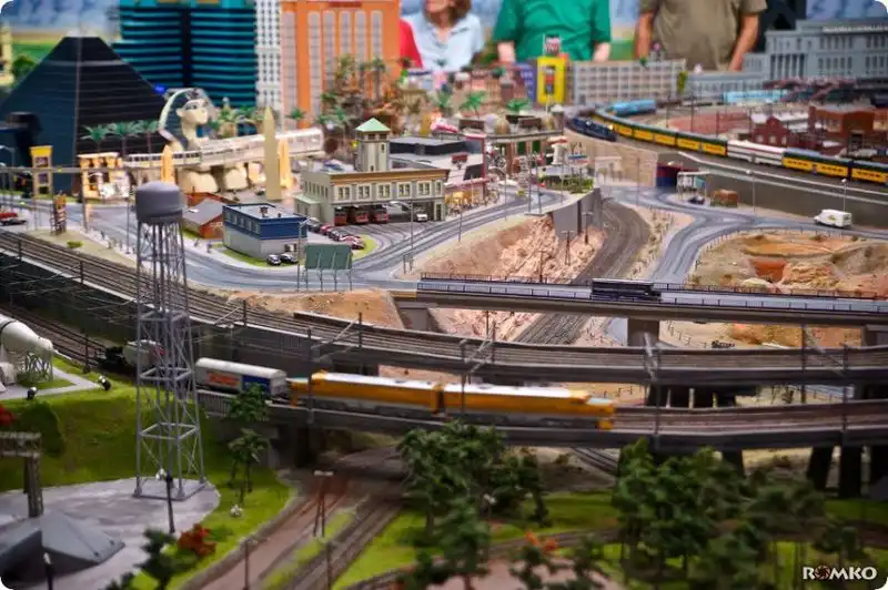 Практически все на экспозиции движется и живет собственной жизнью: меняется время суток, на улицах зажигаются и гаснут фонари, поезда, грузовики и баржи везут грузы, полиция ловит нарушителей, пожарные расчеты едут на вызовы, люди гуляют в парках, катаются на фуникулерах, обедают на газонах, купаются, ждут автобуса, катаются на лыжах. Словом, делают то, что и их прототипы из большого мира.