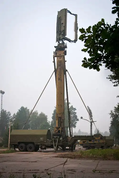 Подошел поближе, присмотрелся: батюшки! Да это же универсальная радиолокационная станция в положении транспортировки, а чуть дальше - еще одна, в рабочем состоянии, на универсальной передвижной вышке.