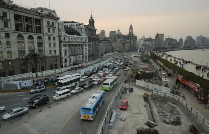 Пробка возникла из-за реконструкционных работ в историческом районе Шанхая 25 марта 2008 года.