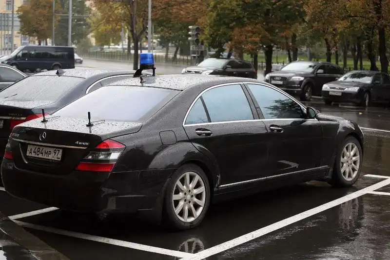 А вот с автомобилями ФСО России даже не знаю. Может им по службе и лучше, чтобы никто нормально прицелиться не мог. В общем, растонированных машин ФСО не видно.